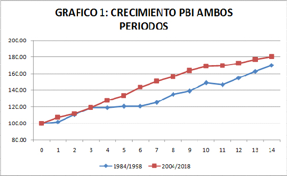 En síntesis dos crecimiento de porte relativamente similar y de consecuencias absolutamente opuestas en la calidad de vida de las familias trabajadoras.