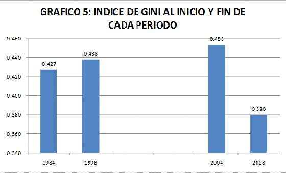 Es claro que la desigualdad que en 1984 era muy mala y además empeoró en 14 años de crecimiento. Mientras que por el contrario en los 14 años recientes tuvo una baja relevante.