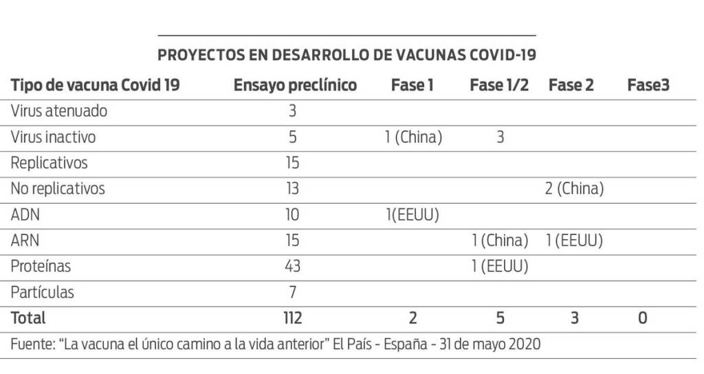 Según la Organización Panamericana de la Salud (OPS), sólo hay 26 enfermedades para las que se dispone de una vacuna. Desde las pruebas de laboratorio al acceso universal se necesitó un promedio de más de diez años, y no siempre se logró alcanzar una vacuna eficaz y segura (VIH, zika). La ciencia nunca había funcionado de manera tan rápida como en el caso del SARS-CoV-2. En los cinco meses transcurridos desde que se identificó el nuevo coronavirus en la ciudad de Wuhan se han desarrollado 123 proyectos de vacuna, y diez de ellos ya se están probando en humanos en Estados Unidos, China, Alemania y Reino Unido.